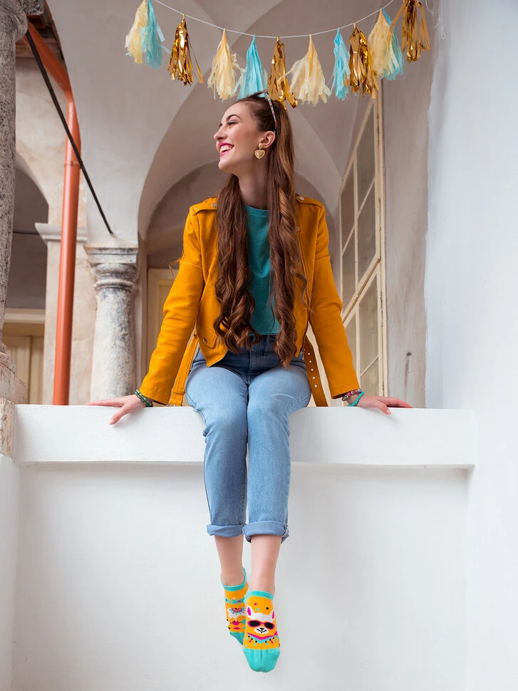Das Leben ist kein Drama – das sagt unser cooler Lama. Bewahre einen kühlen Kopf mit lustigen Sneakersocken, die dich total aufheitern werden.