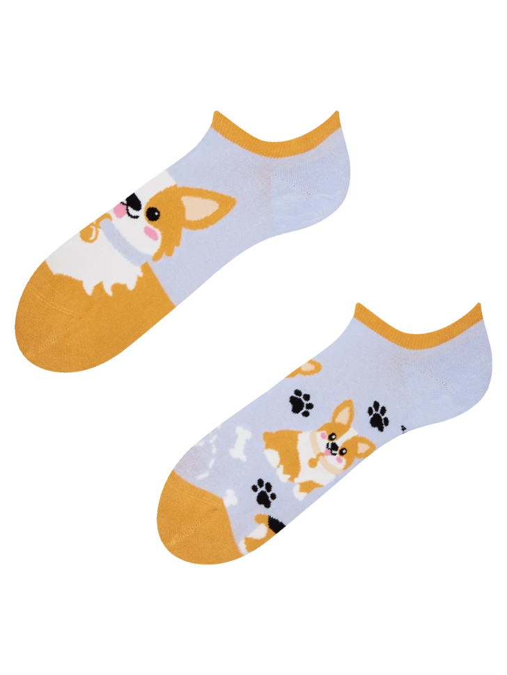 Wer mag schon keine Corgis mit ihren großen Ohren und kurzen Pfoten? Unsere lustigen Sneakersocken wären wahrscheinlich zu groß für Corgis, aber sie passen perfekt zu deinen Füßen und verschönern dir den Tag.