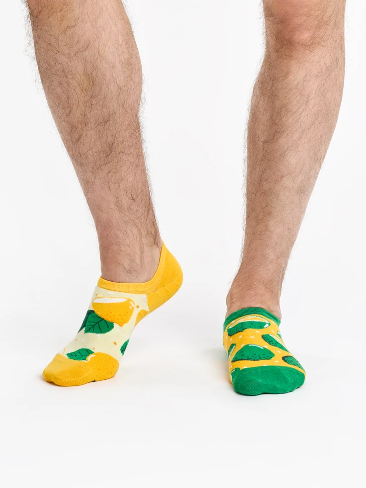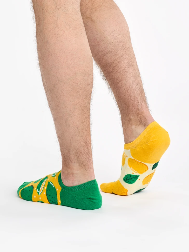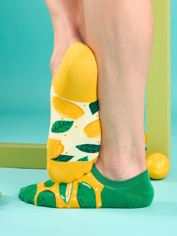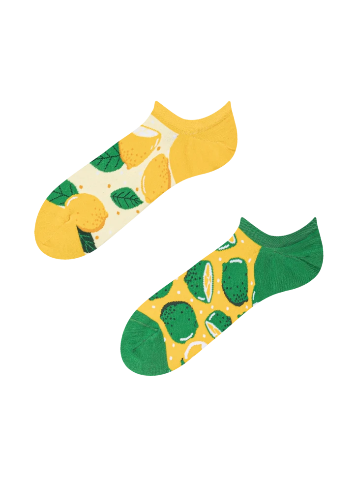 Zitrone und Limette – die bunten Geschwister aus der Familie der Zitrusfrüchte. Welche Frucht liegt dir am Herzen? Wenn du dich nicht entscheiden kannst, kannst du dir mit unseren lustigen Sneakersocken beides auf einmal gönnen. Füge eine Dosis Vitamin C hinzu und gönne deinen Füßen den ultimativen Komfort.