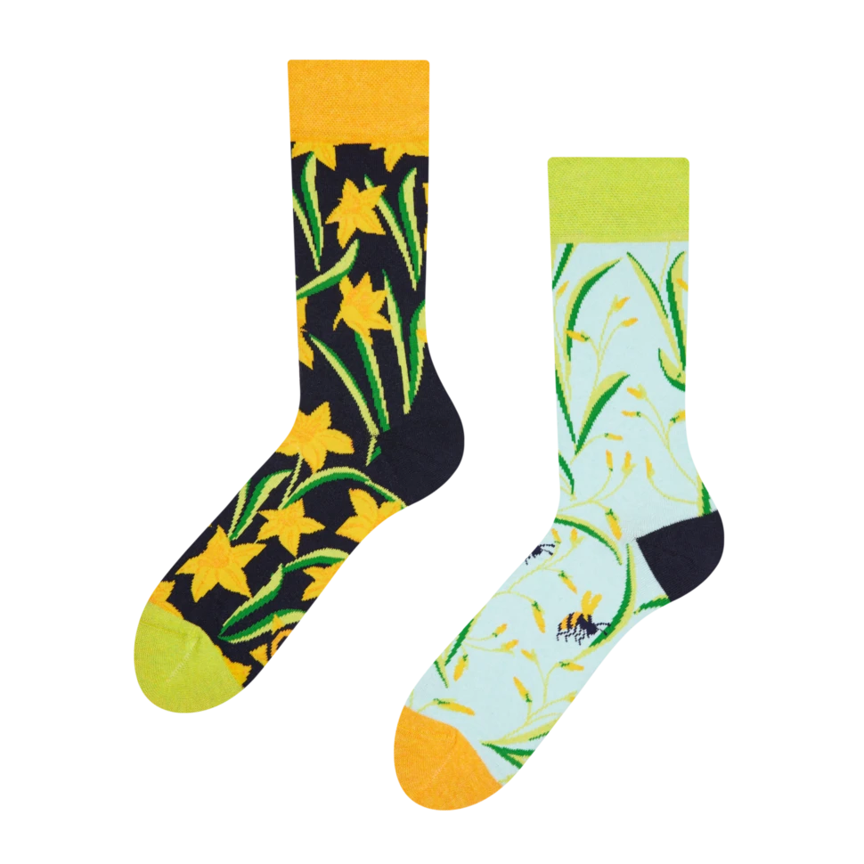 Narzissen zusammen mit lustigen Socken aus recycelter Baumwolle? Ein Traumpaar! Zieh sie an und beweise allen um dich herum, dass du einfach die Natur liebst und gute Laune versprühst.
