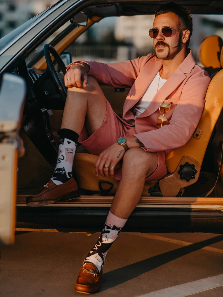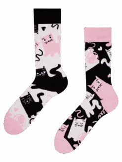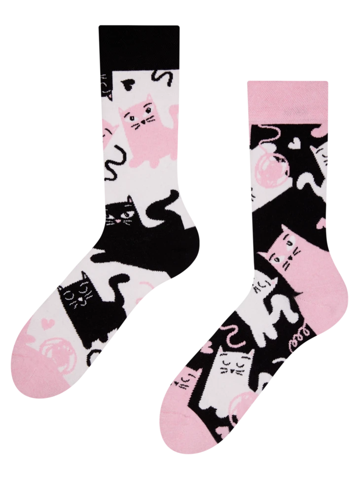 Hast du gewusst, dass Katzen 22 Stunden am Tag schlafen können? Wenn du ein Katzenliebhaber bist, dann werden dir unsere lustigen Socken bestimmt gefallen. Sie sind aus recycelter Baumwolle und können deinen Tag im Nu zum Strahlen bringen.