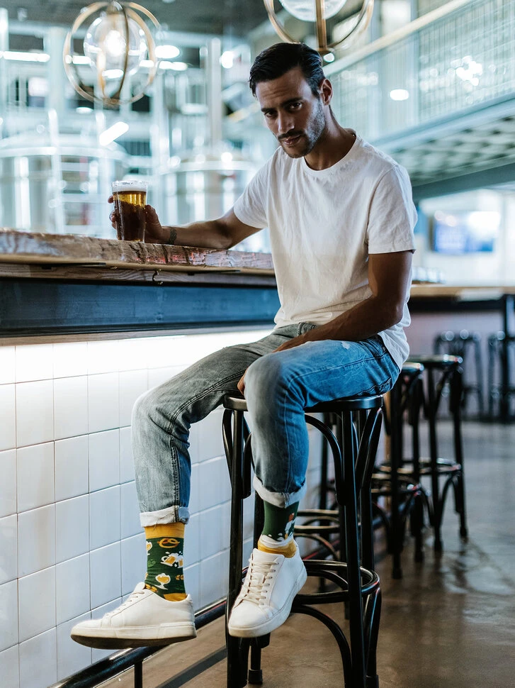 Hast du eine bevorzugte Bierkneipe? Wenn du das nächste Mal hingehst, dann zieh für eine Extraportion gute Laune unbedingt diese lustigen Socken an. Sie sind derart bequem, dass du sie gar nicht mehr ausziehen willst.