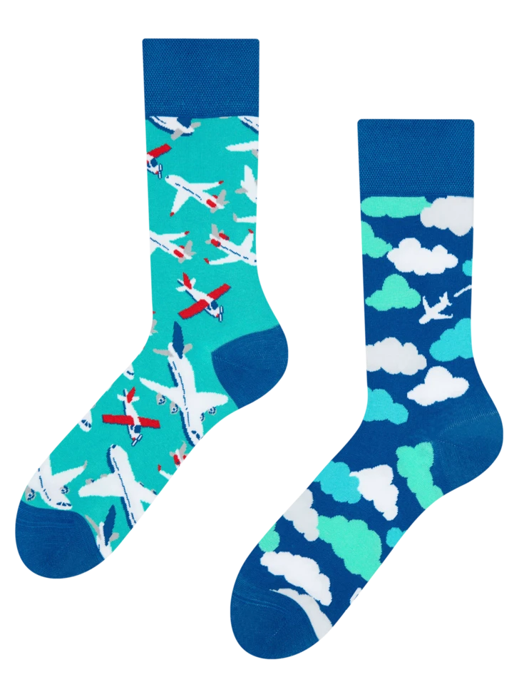 Haben Sie den Kopf oft in den Wolken? Lieben Sie das Fliegen? Dann sind diese lustigen Socken wie für Sie geschaffen.