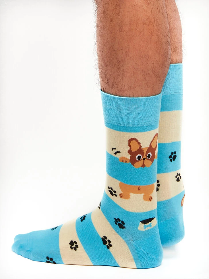 Hundeaugen sprechen die schönste Sprache. Man spürt unendliche Liebe und Hingabe in ihnen. Mit diesen hohen Socken hast du dein Lieblingstier immer ganz nah bei dir und kannst deinen Tag aufheitern.