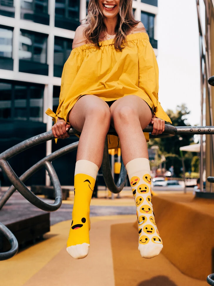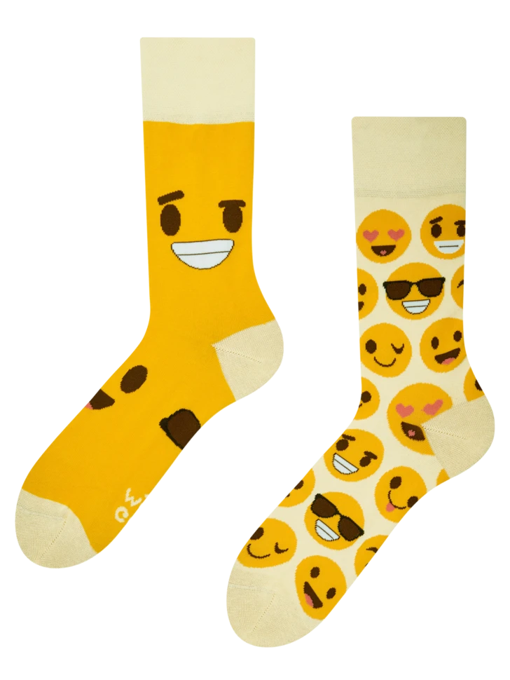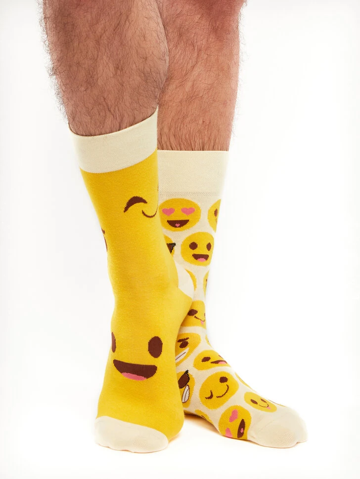 Jede Textnachricht ohne Smileys kommt uns heutzutage unvollständig vor. Welche Emoji ist dein liebstes? Kannst du es auf diesen Socken finden?