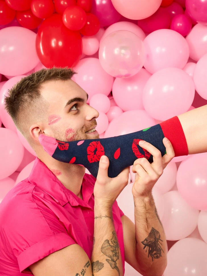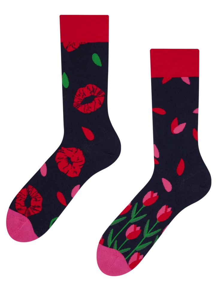 Ein beliebtes Valentinstagsgeschenk gibt es jetzt auch als lustiges Sockenmuster. Schenke deiner besseren Hälfte ein Paar lustige Socken mit dem Motiv Tulpenlippen, und wir versprechen dir, dass du nicht lange auf einen richtigen Kuss warten musst.