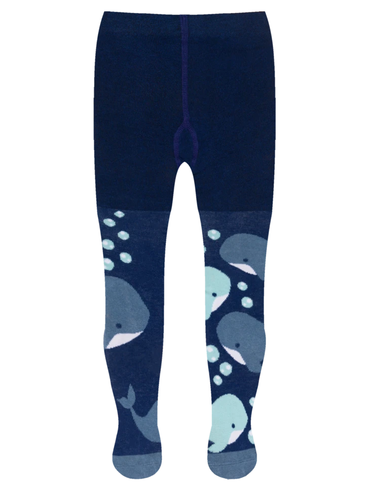 Wusstest du, dass die Schwänze von Walen einzigartige Muster aufweisen, die den menschlichen Fingerabdrücken ähneln? Mit einer fröhlichen Kinderstrumpfhose mit dem Motiv des majestätischen Tieres ist dein(e) kleine(r) Liebling sicher gerne in der Welt unterwegs.