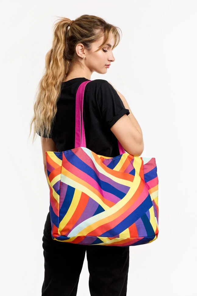 Diese lustige Tragetasche mit Regenbogenmotiv ist das perfekte Modeaccessoire für die trüben Tage. Lass deine gute Laune nicht zu Hause, verstecke sie stattdessen in dieser geräumigen Tasche. Sie wird dich am Strand, im Laden oder im Fitnessstudio treu begleiten.