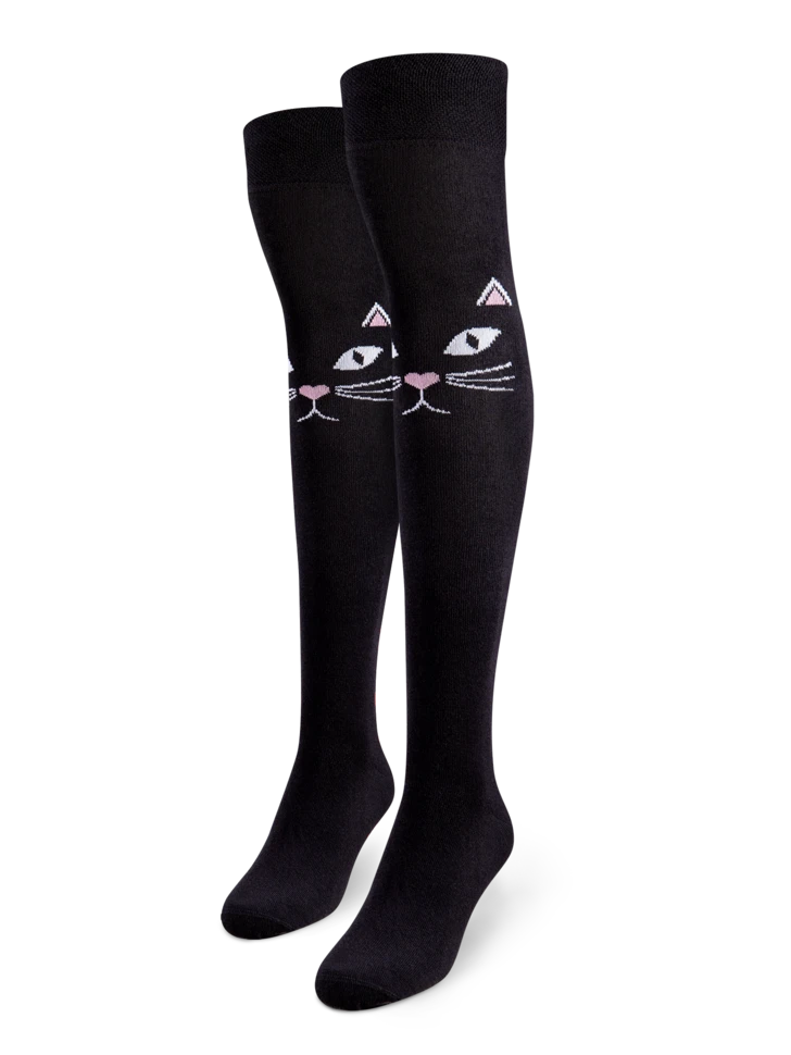 Katzen können viele Gedanken in einem einzigen Miau ausdrücken. Mit diesen originellen Überkniestrümpfen kannst du dich über deine Kleidung ausdrücken, ohne Worte oder Miauen!