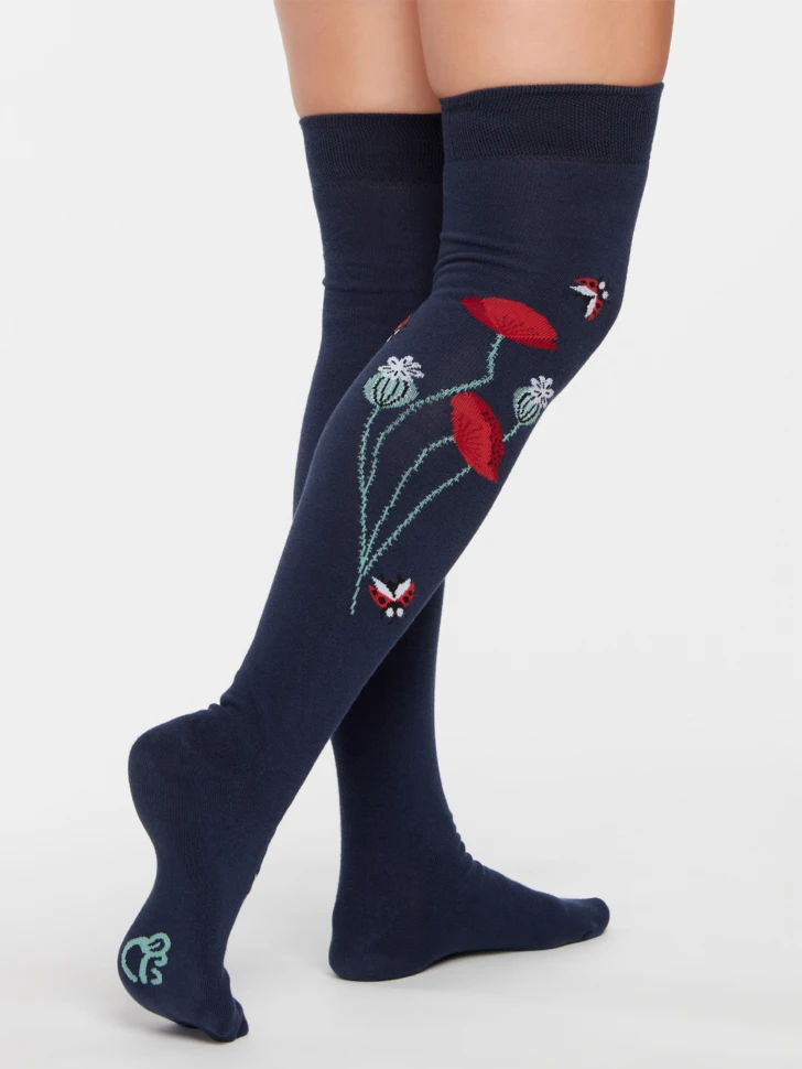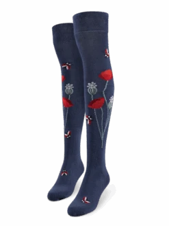 Was haben Marienkäfer und Mohnblumen gemeinsam? Ihre Farben – rot und schwarz. Wenn dies ebenfalls deine Lieblingsfarbkombination ist, sind diese Überkniestrümpfen genau das Richtige für dich.