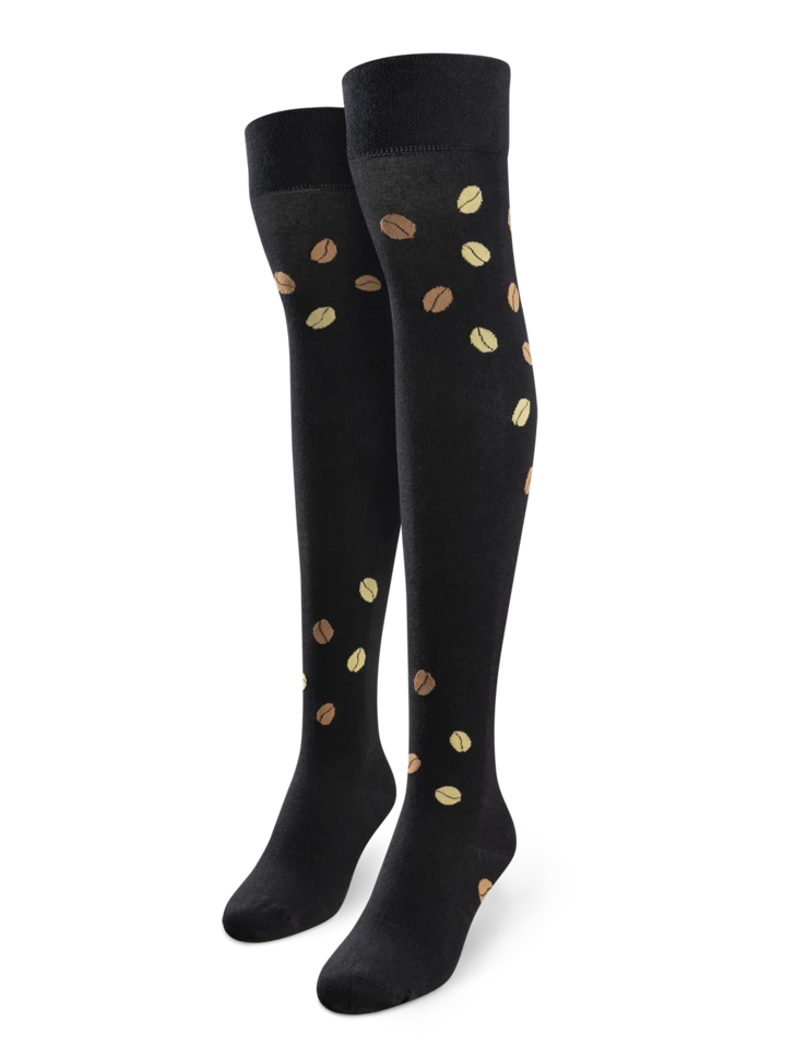 Kaffee ist für viele Menschen ein Garant für positive Energie. Wusstest du, dass unsere lustigen Überkniestrümpfe die gleiche Wirkung haben? Zieh sie an und du wirst sehen, wie sie deinen Tag mit Freude und guter Laune erfüllen.