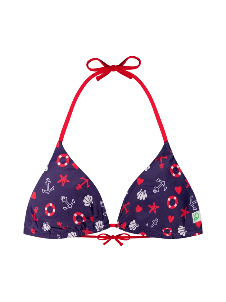 Wer möchte nicht unbeschwert auf dem Meer segeln und die grenzenlose Freiheit genießen? Wenn du manchmal in Meeresstimmung verfällst, ist dieser lustige Bikinioberteil in Triangelform wie für dich geschaffen. Du wirst dich damit auf dem Meer oder an Land wohl und attraktiv fühlen.