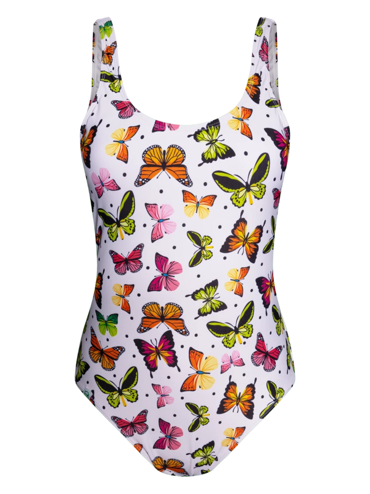 Es kann nie genug Farben geben. Schmetterlinge wissen es, und wir wissen das auch. Bringe deinen Sommer mit dem lustigen einteiligen Badeanzug für Frauen zum Strahlen.