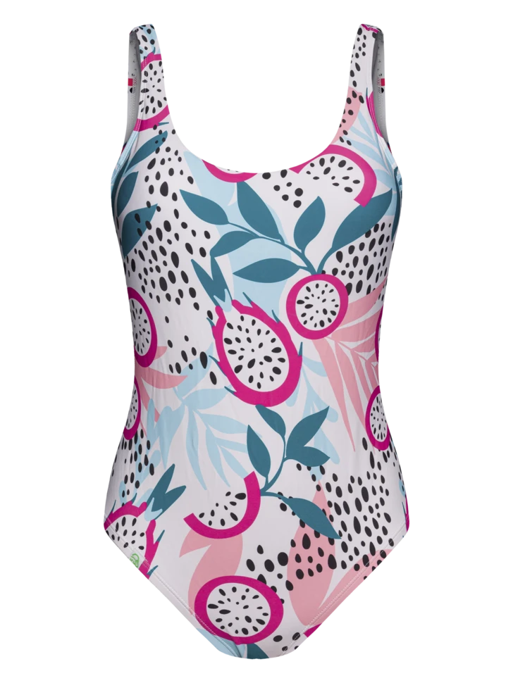 Wusstest du, dass die Drachenfrucht eine hervorragende Quelle für Vitamin C ist und außerdem die Kollagenproduktion unterstützt? Aber sie ist nicht die einzige, die für einen frischen Look sorgt! Mit diesem lustigen einteiligen Badeanzug für Frauen wirst du definitiv die Königin des Strandes sein.