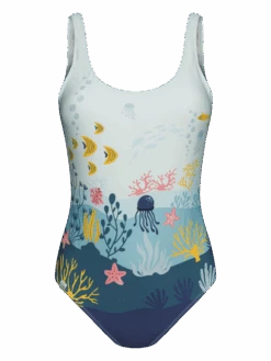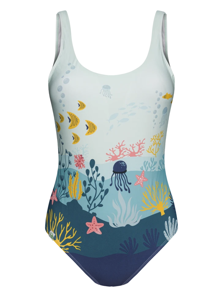 Tauche mit dem lustigen einteiligen Badeanzug für Frauen in die geheimnisvolle Welt der Korallen ein! Sie passen wie angegossen, sind aus teilweise recyceltem Material hergestellt und bringen deinen Tag sofort zum Strahlen.