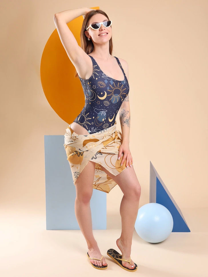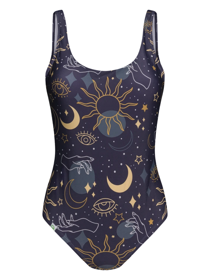 Ein mystischer Himmel in verschiedenen Schattierungen kann in einem Menschen viele Gefühle hervorrufen. Dieser lustige einteilige Badeanzug für Frauen wird nur eines hervorrufen – nämlich eine gute Stimmung. Zieh sie an und genieße den Sommer mit Stil und absolutem Komfort.