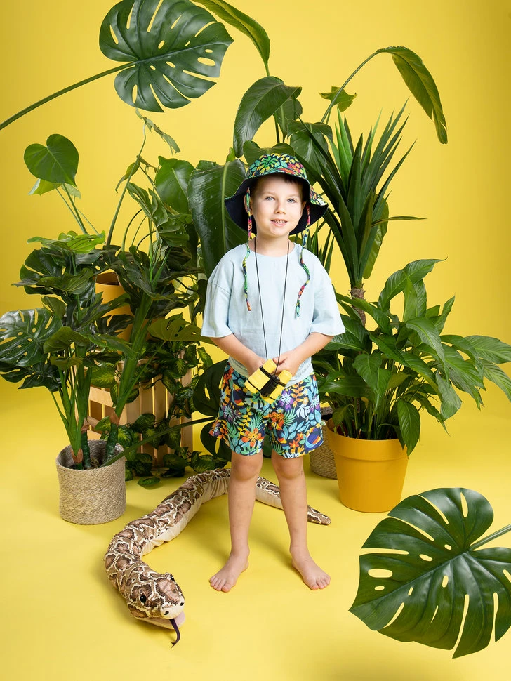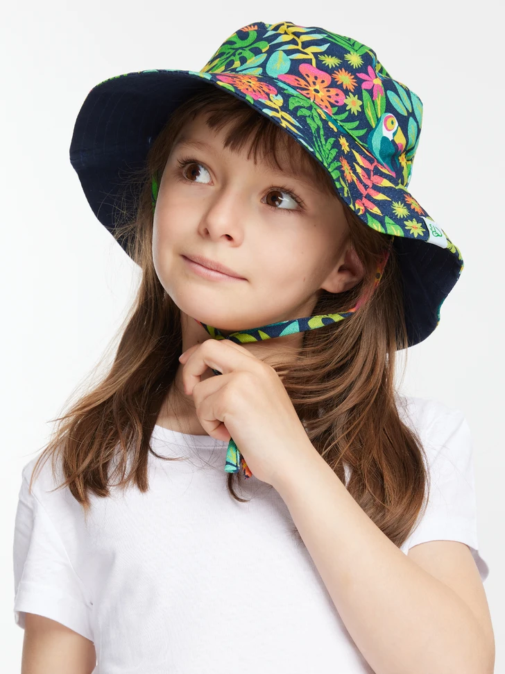 Fahr mit deinem Kind in den Urlaub in tropische Länder. Wie? Mit unserem lustigen Fischerhut für Kinder! Und vergiss nicht, dir einen Badeanzug oder ein Strandtuch im gleichen Design für das perfekte Sommerset zuzulegen.