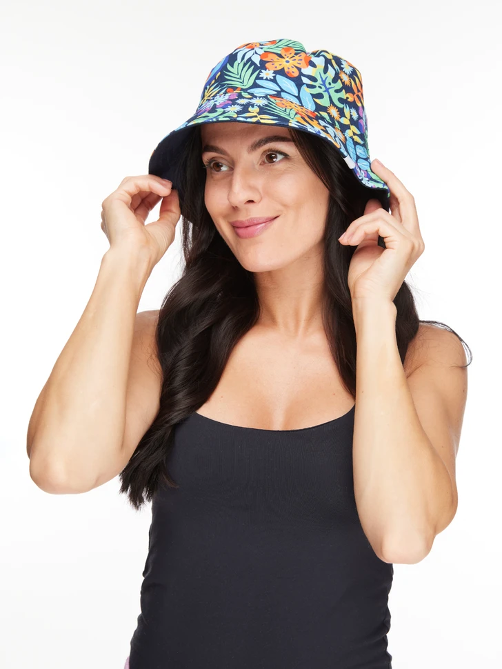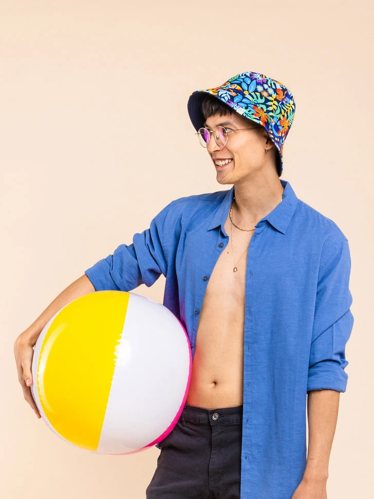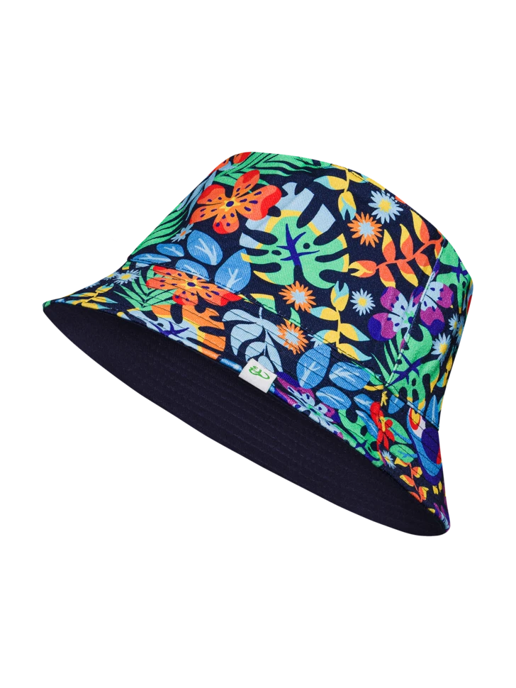 Fahr in den Urlaub in tropische Länder. Wie? Mit diesem lustigen Fischerhut! Und vergiss nicht, dir einen Badeanzug oder ein Strandtuch im gleichen Design für das perfekte Sommerset zuzulegen.