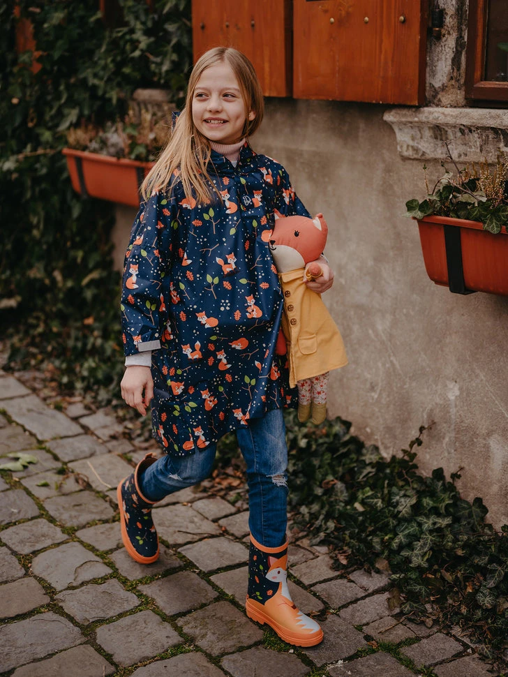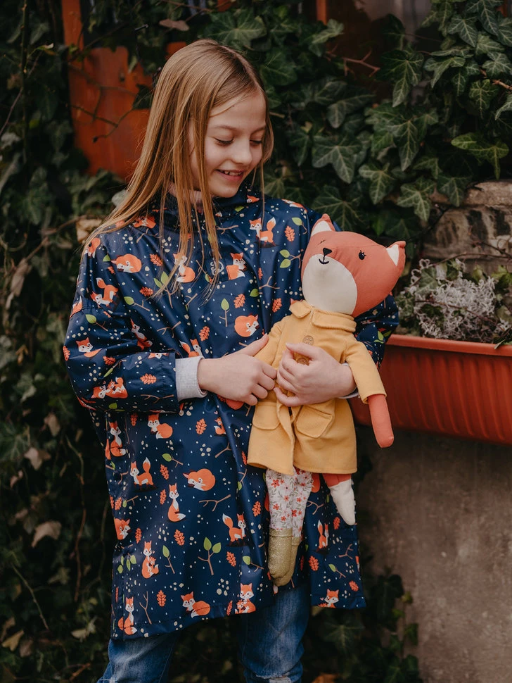 Flauschige Füchse sehen zwar niedlich aus, aber sie sind auch ziemlich schlau. Wenn auch dein Kind gelegentlich etwas Unheil im Schilde führt, ist dieser lustige Regenmantel für Kinder mit Fuchsmotiv genau das Richtige für ihn. Verregnete Tage haben noch nie so viel Spaß gemacht.
