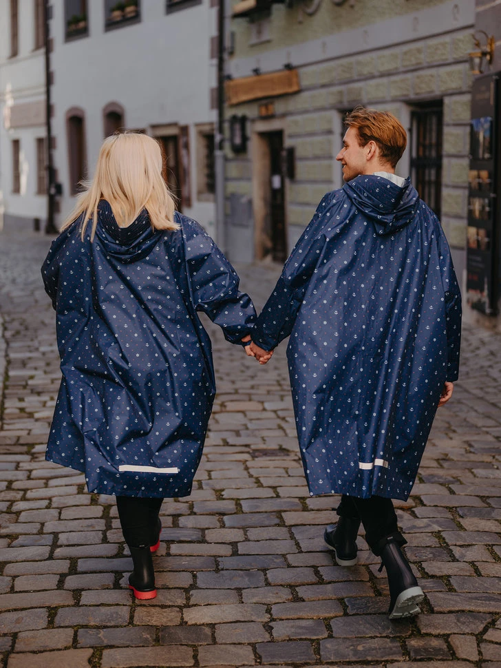 Während Matrosen mit jedem Boot zurechtkommen, kommt unser lustiger Regenmantel mit jedem Wassertropfen klar. Besorge dir auch einen Regenschirm mit dem gleichen Design, denn die beiden sind ein unzertrennliches Paar.