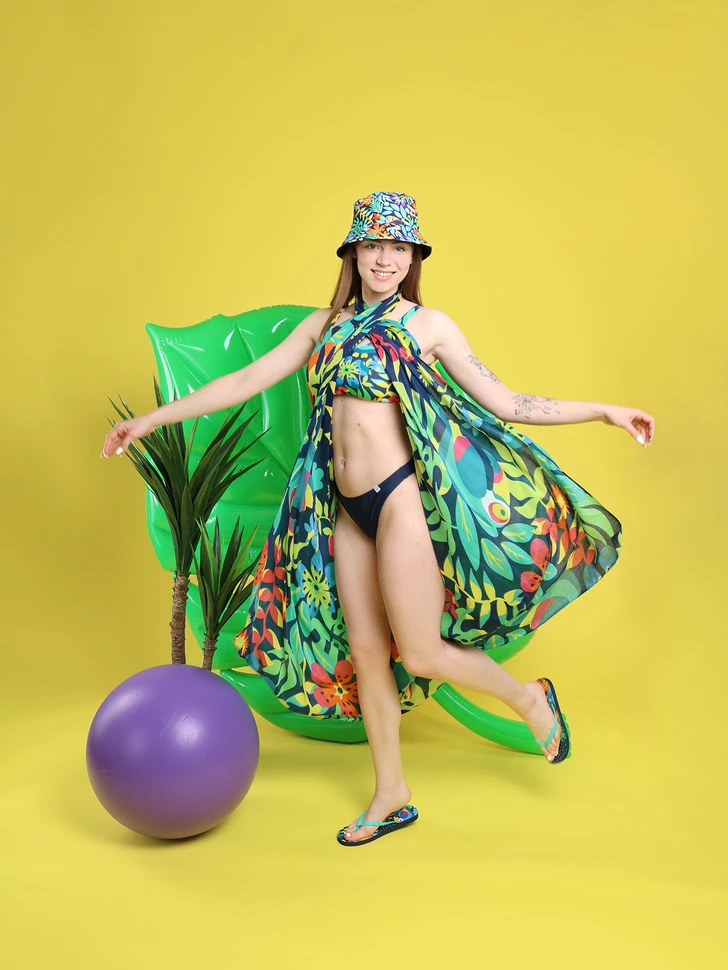 Hast du schon einen Badeanzug von Dedoles mit Tukanmotiv? Wir haben eine tolle Nachricht! Du kannst ihn jetzt mit einem passenden, lustigen Strandpareo kombinieren! Wickle dich in den weichen und luftigen Stoff ein und genieße sonnige Tage am Wasser ausgiebig. Es liegt an dir, wie du ihn tragen willst. Egal, ob du ihn als Kleid oder als Rock trägst, du wirst die Königin des Strandes sein.