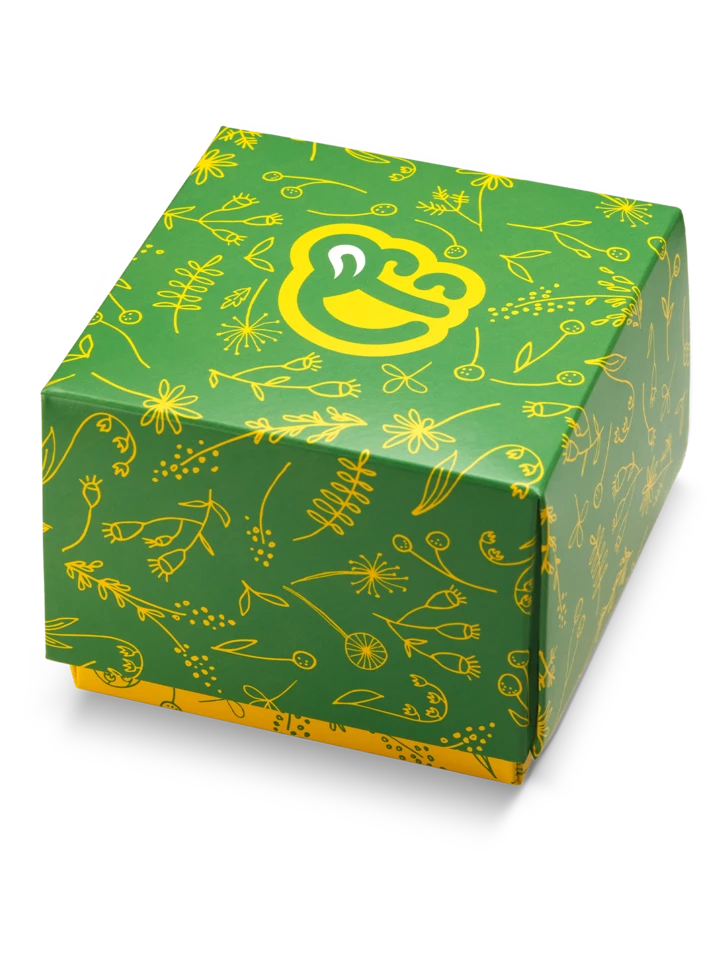 Lass die Freude aufblühen. Verstecke lustige Geschenke für deine Liebsten in einer mit Frühlingsblumen überzogenen Geschenkbox und sorge für ein Lächeln auf ihren Gesichtern.