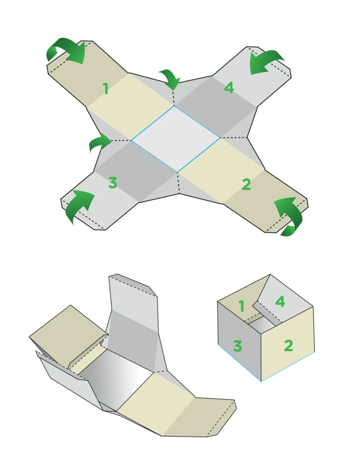 - Die Box ist flach verpackt und wird mit einer praktischen Anleitung zum Falten geliefert