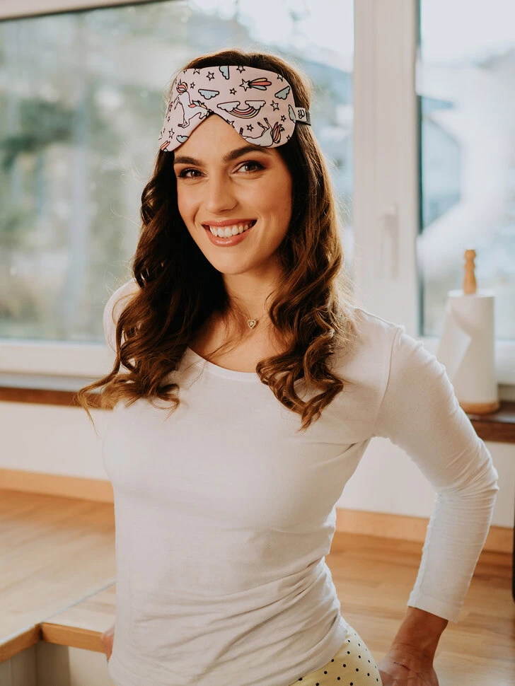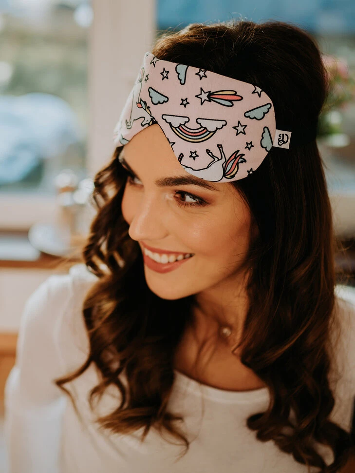 Brauchst du einen ordentlichen Schlaf? Ziehe die lustige Schlafmaske an und stelle dich auf eine Portion süße Träume (nicht nur) über Regenbögen und Einhörner ein.