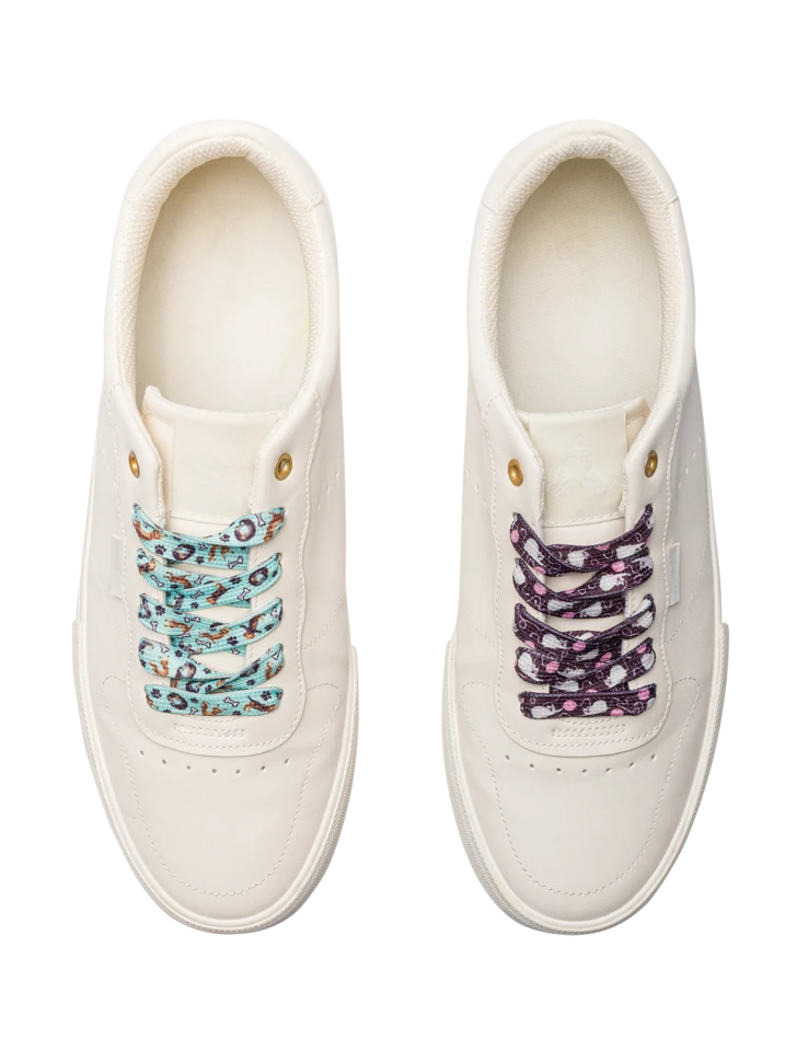 Willst du deine Turnschuhe zu etwas Besonderem machen? Verschönere sie mit originellen Schnürsenkeln, mit denen du dich garantiert von den anderen abheben wirst. Das Pack enthält drei Paar Schnürsenkel, von denen einer im Dunkeln leuchtet. Binde sie in die Canvas-Schuhe von Dedoles oder andere Schuhe, die du zu Hause hast.